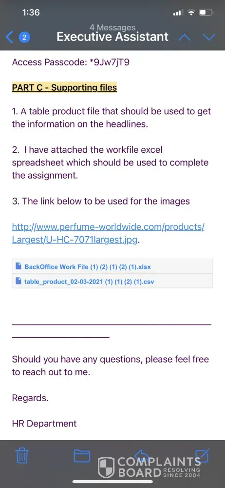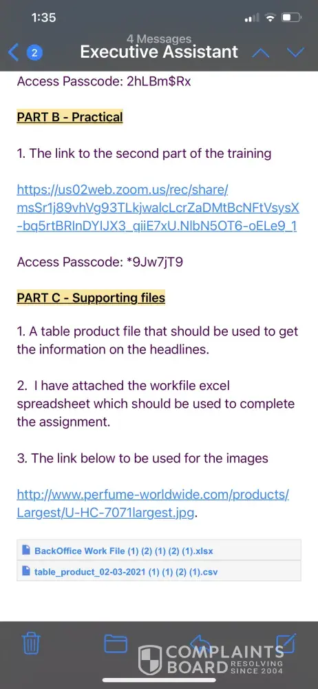 In May 2021 the company adversities vacancies in which I applied for the position of executive assistant. I'm June 2021 I received an email from HR which invited me to complete an assessment exercise in which if I am selected I would immediately start training and be place into 1 of 7 positions. It also mentioned that we could be paid $45 per day for this 2 weeks training. A copy of this email will be attached. A few days after completing this assessment I was called by the company to start training. I was told that I would be placed in a WhatsApp group in which further details would be given. This group was formed and no information was given however the training did start the very next day. During this training we were given many different types of work to do an was submitted at the end of the day. However no training was conducted for the positions applied for. After questioning Samiah Paul who identifies herself as the head of the branch in Saint Lucia told us that this training was necessary for evaluation purposes. This statement began the problems.