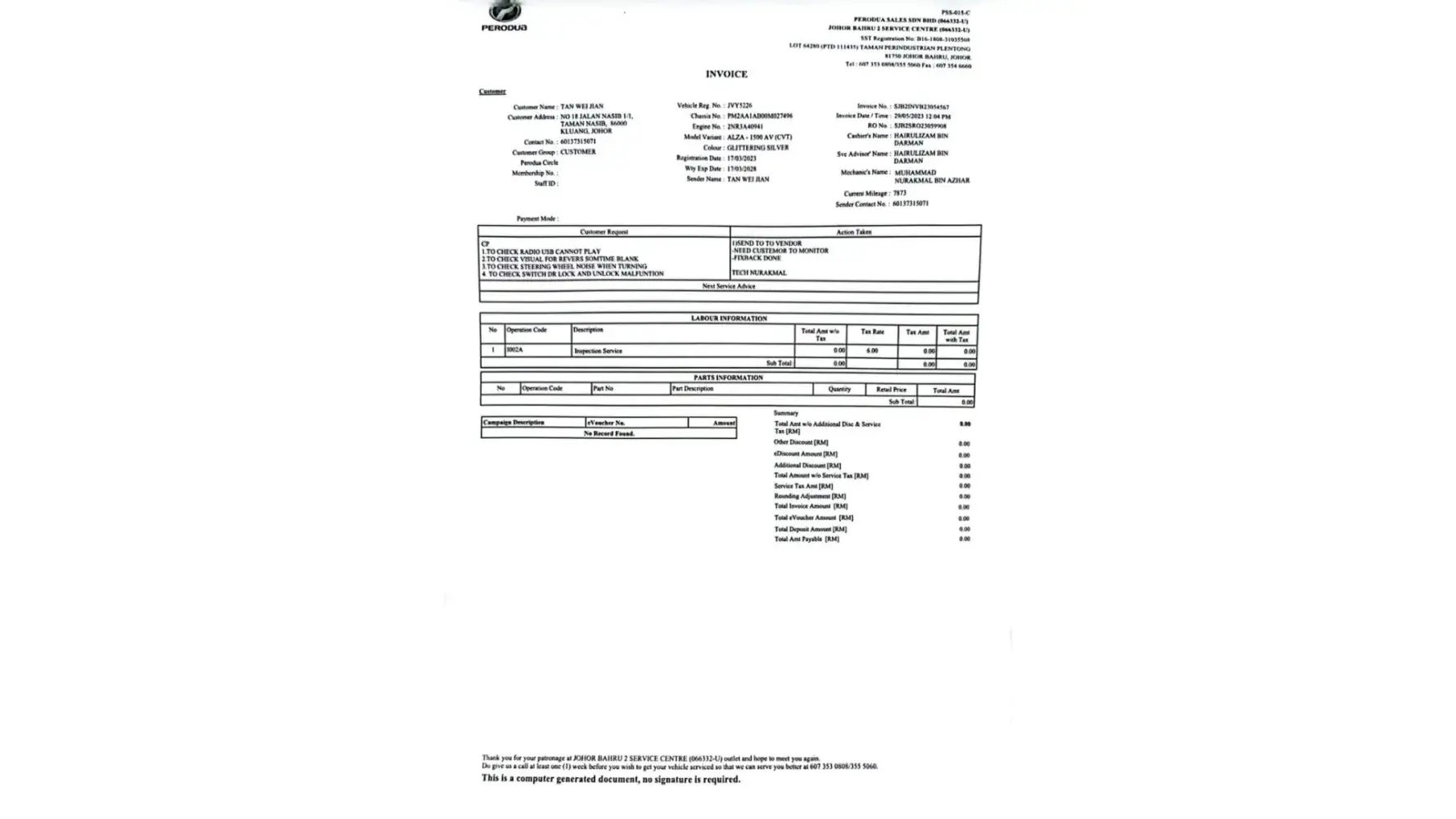 I trust in your commitment to customer satisfaction and the reputation of your Perodua brand. However, failure to respond adequately or a lack of consideration for this complaint will leave me with no choice but to escalate this matter by reporting it to the appropriate consumer protection agencies and seeking legal remedies to protect my rights as a consumer.