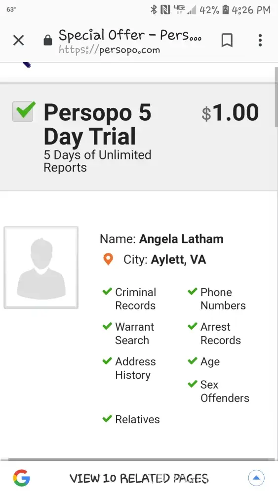 I had made a search request on Persopo and subscribed for 5 day trial. The whole thing cost me only $1.