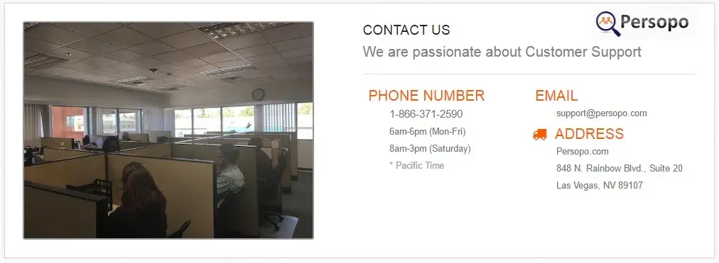 - We found clear and detailed contact information for Persopo. The company provides a physical address, phone number, and 2 emails, as well as 4 social media accounts. This demonstrates a commitment to customer service and transparency, which is a positive sign for building trust with customers.