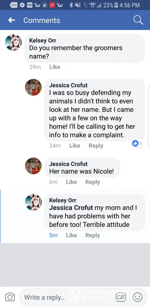 I took my dog into a grooming appointment today. I got a call saying the groomer had to wait to finish her rough cut until another employee came into work. She claimed my dog was squirming around and she was afraid to cut her. I said that was fine and waited for her to finish. Once I picked her up I noticed her biting different places and rolling around unlike usual. Upon further inspection I found sever knicks and razor burns all over her body. I understand she might have been squirming but I paid over $70 to put my baby in pain. I'm infuriated.
