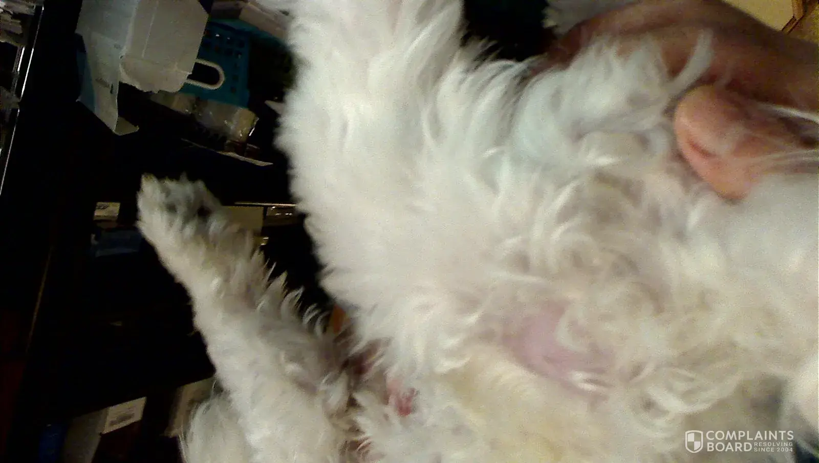 Severe razor burn of the right buttock 40mm x 40mm while grooming charlie, an 11 month old maltese puppy on 9/28/22