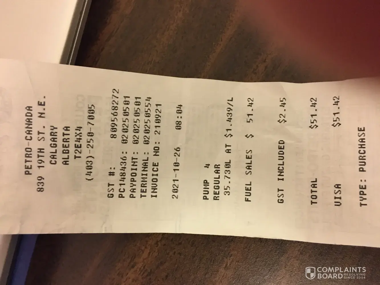 On October 26, 2021 I purchased gas at Petro Canada station.