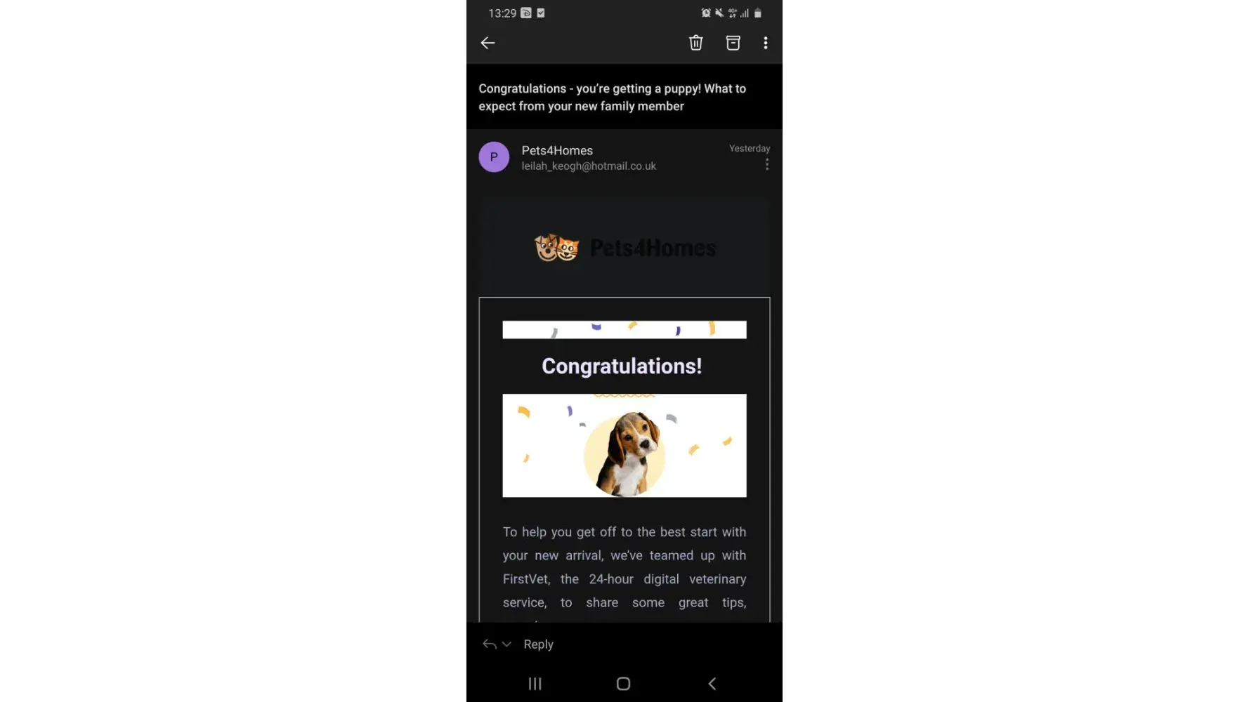As I was waiting on the owner to reply to having a time to meet up. I received an email from yourselves confirming "congratulation, you are getting a puppy"
