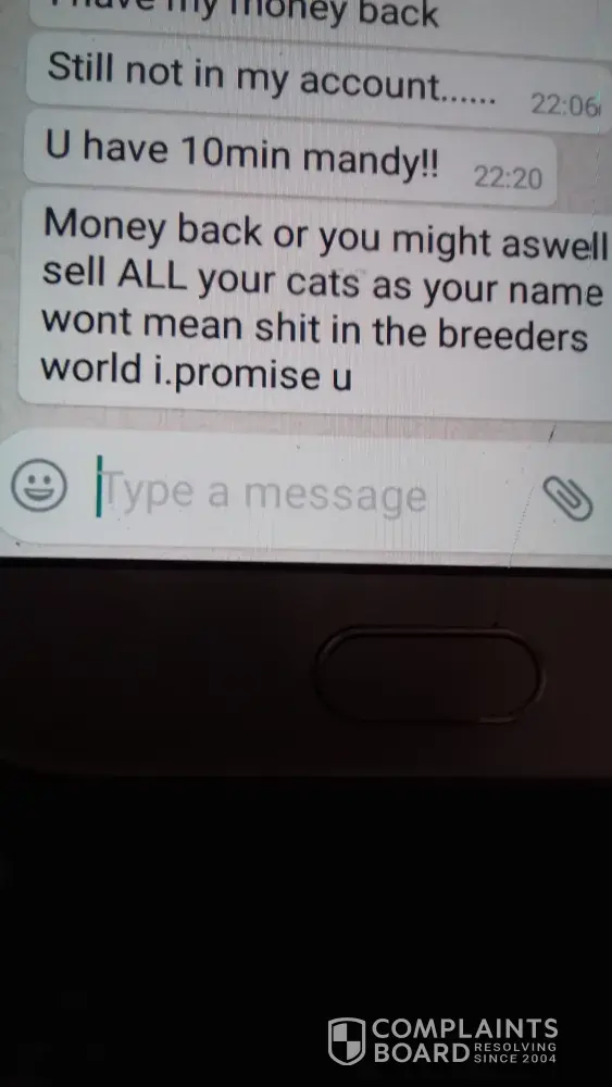 Pets4homes closed my account. As I was selling a kitten and this woman got very nasty long story. But I said I'd refundo you Monday. As I had to go the bank put money in. As she had paid a deposit. She demanded it back Now. Iv got some photos of her demandingredients it straight away. My daughter got home from work and saw all theating messages and she kindly sent the woman her deposit for me. Now pets4homes just closed my account based on her lies. Had abuse of her all night . Then she started on my daughter. Then pets4homes closed my account as I'd not paid back her deposit . Saying it's against their rules. Which I did give it her straight away. Iv since sold the kitten i put her on preloved. But i think its so wrong all this. What iv had to put up with. Its like us sellers dont get any respect at all. Not when a malicious liar speaks.Thanks mandy