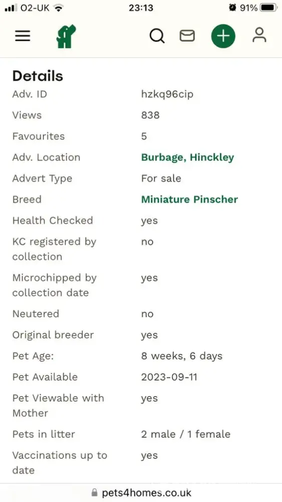 hi I brought a puppy on the 11th of feb that claimed in the advert to be a full dachshund, which was also reflected in the price I paid £800 I then found out the puppy is a mixed breed. the seller is very unresponsive and fails to refund any money even though a mixed breed is only worth £300-£400. I contacted pets 4 homes as I wanted to get hold of the original advert as I am taking the seller to court but they refuse to correspond or email me back.