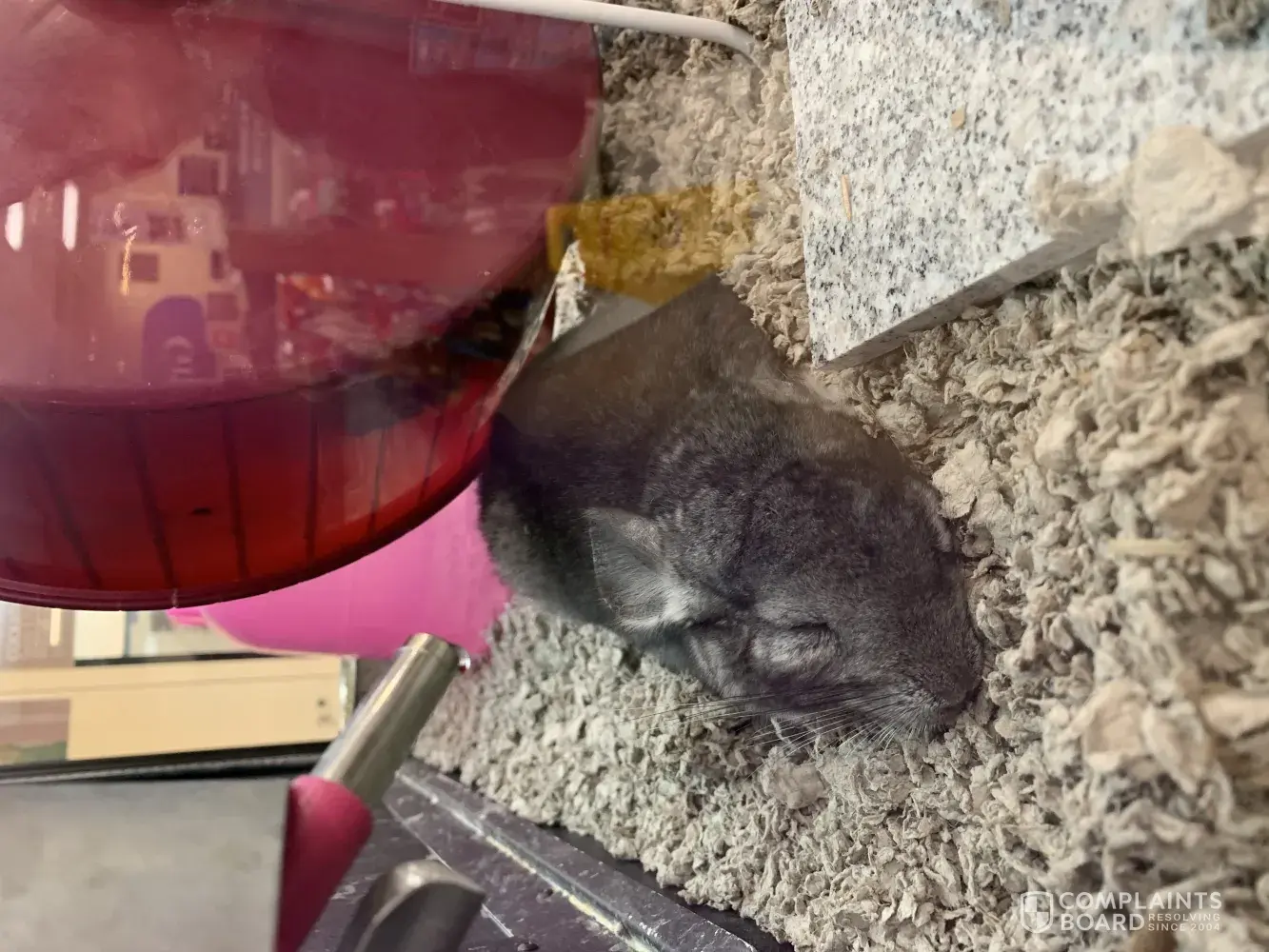 This store has 3 chinchillas living in insufficient conditions. Their bedding is of a brown paper and not healthy at all. Chinchilla's will eat paper bedding which gets stuck in their intestines and can kill them. I witnessed this today with what looked to be one of the youngest chins sitting in a corner munching away on bedding and their fresh grass and...