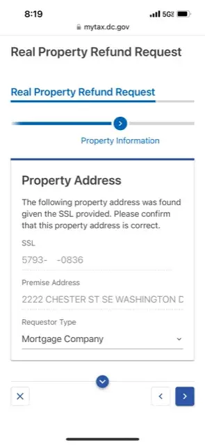 Desired outcome: Request tax refund from the District of Columbia utilizing the DC Tax Office website and my property address. The information is on my portal and they simply need to ask for the refund, as they did previously.
