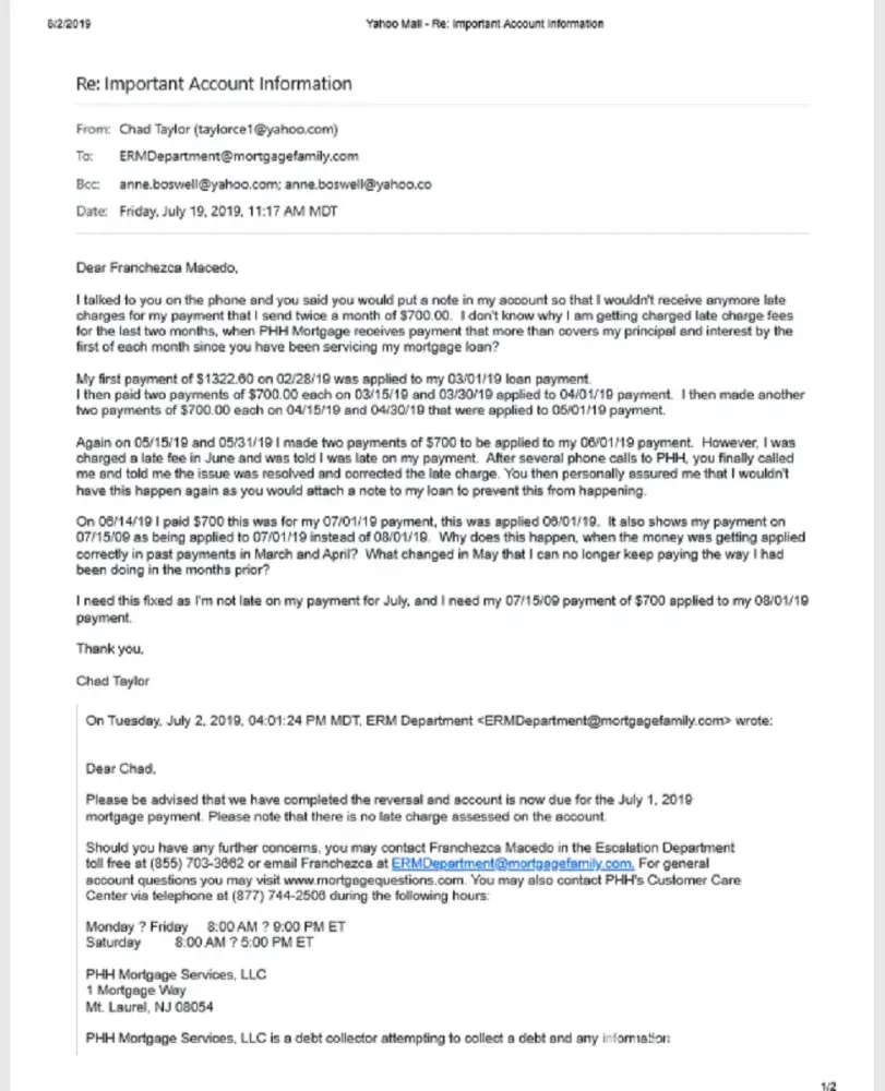 If I find that PHH's dysfunctional payment venues or snail mail processing causes issues with my good credit, I will seek legal advice against PHH and Ocwen, for transferring my loan to such a travesty of a subsidiary.