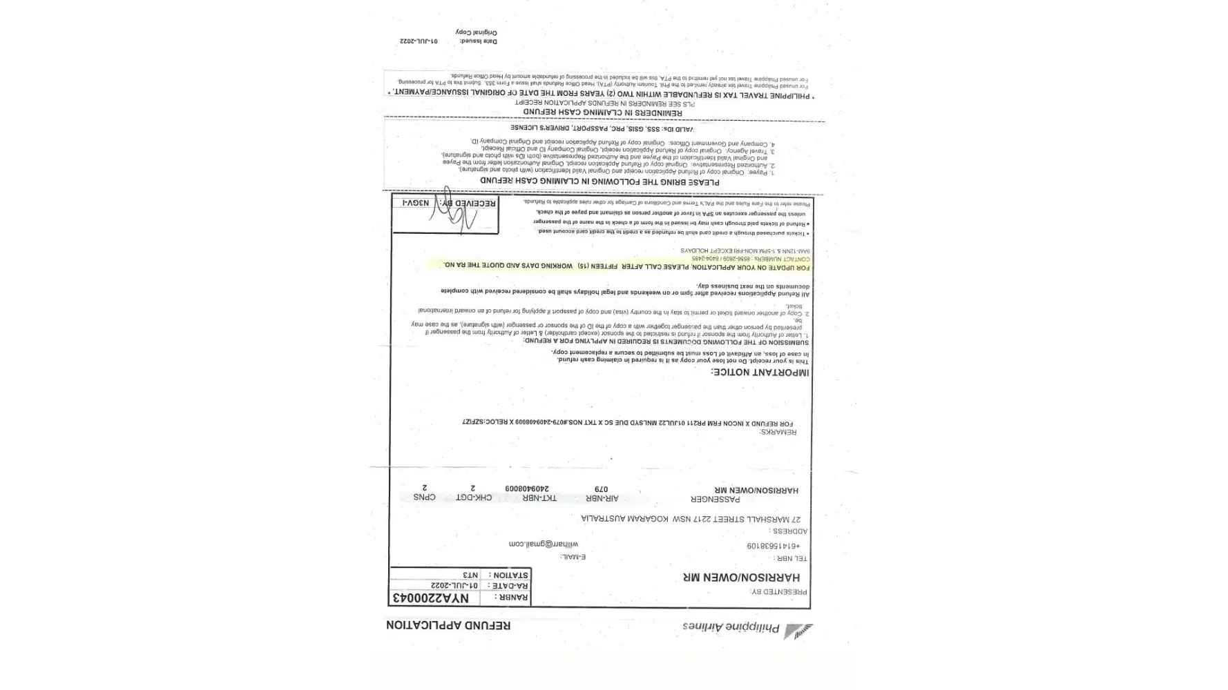 On 1 July 2022 I was issued with a refund application NYA2200043. I attach a copy of the same. I have called by telephone from Australia many times to ask when the application will be processed. On each occasion I was told that it would not be long. Sometimes I was told that a refund had already been made. I told the operator that I have not received a refund. I think that there is some confusion because at the same time that I was applying for a refund of my international ticket, I also purchased a domestic ticket from Manila to Tacloban. The sales team member made a mistake when my credit card was presented to pay for my domestic ticket. He refunded the incorrect amount that he charged for the Manila to Tacloban ticket and then used the card again to charge the correct amount. But this had nothing to do with the international ticket from Manila to Sydney for which I was applying for a refund. It has now been over 7 months since I applied for the refund. Could you please process it? My email address is [protected]@gmail.com.au. My telephone number is +[protected].