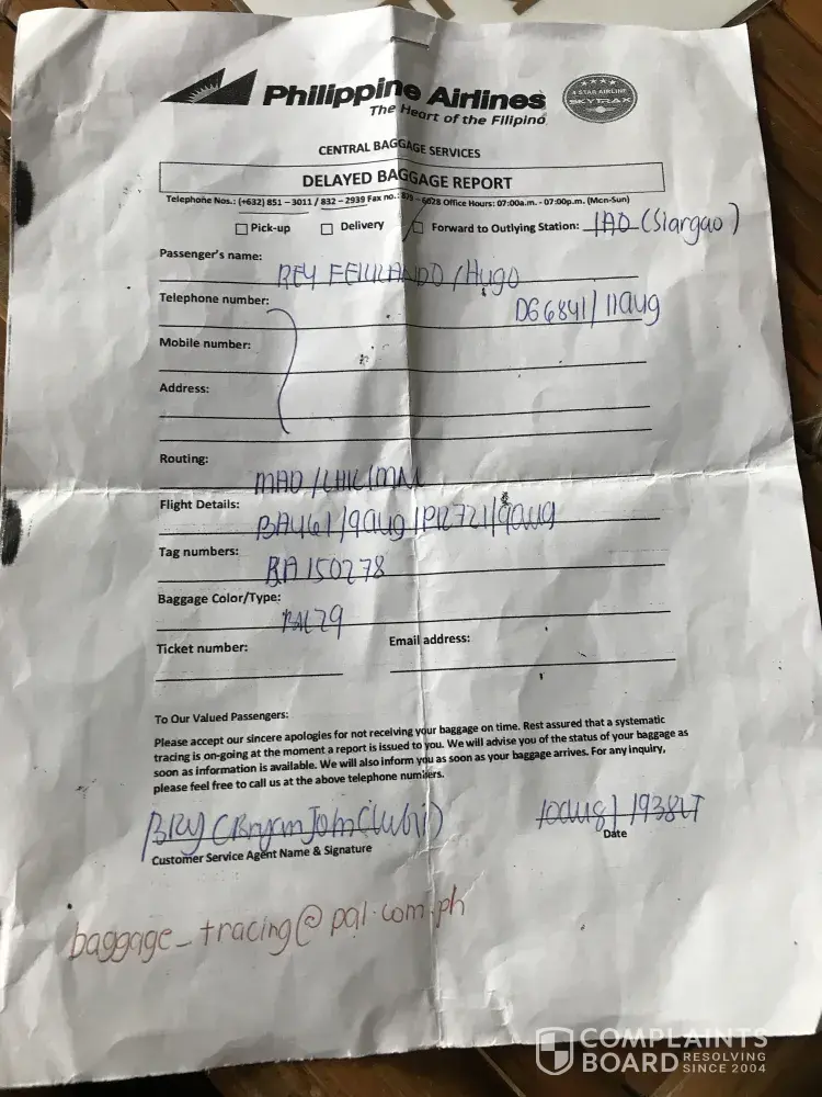 Lost Luggage claim - Denied by Philippine Airlines