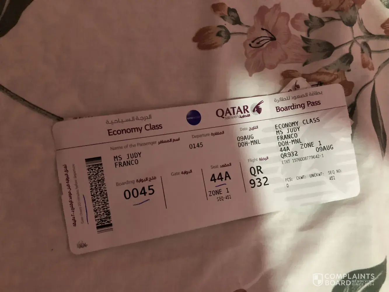 I would like to file a complaint in behalf of my sister Judy L. Franco who has taken Qatar Airways flight no. Qr 932 from Doha to Manila on August 9 2019. She called me just now devastated and heartbroken to learn that her valuables were taken from the luggage which was suppose to be hand carried. She was already boarding the plane when a female crew asked her to take her bag and put as check in baggage instead. She has informed that there were valuables inside but still they insisted to have it checked in. Upon arrival at manila airport, she immediately took the bag as she has an onward flight to iloilo and in that flight she already hand carried the bag. When she arrived at Iloilo and in our home she found out that the valuables are gone such as oppo mobile phone, several watches and gold jewelries. She is 100 percent sure that her bag was opened. May we call your attention please to make the necessary action regarding this matter.