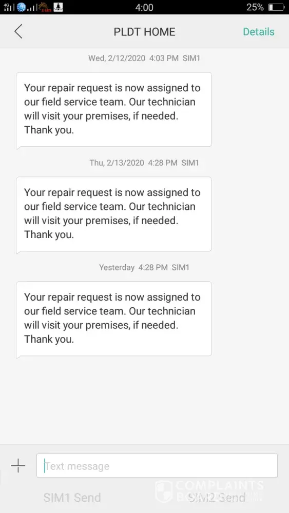 A LOS or loss of signal happened to my PLDT internet and NO Dial Tone (Landline) in the early morning of Saturday, last December 7, 2019. I dialed 171 and complained about it through its customer service representative. A ticket no. was provided to me. I was told that in 3-6 days PLDT's field Technical Support will get in touch with me and address the problem. However, it has been passed 7 days and counting but no PLDT Field Tech Support came or even called to update us on the connection problem. Even after 3 days since I called on my complaint, I have been following up through their hotline 171, sent follow-up messages on my ticket no. thru PLDT Home in FB messenger, also, sent someone to PLDT South Bicutan, but still no feedback, no one came. I learned that a dispatched was given to their Field Tech Support since December 10 still, nothing happened.