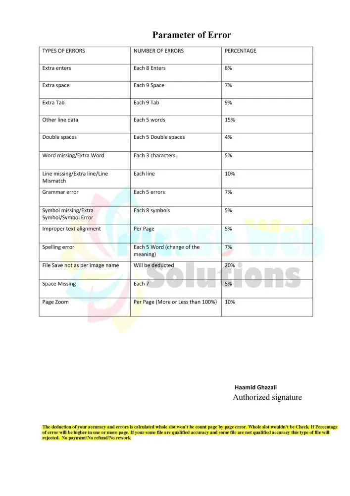 we have your signed Agreement paper that was clear mentioned that our term and conditions of project and you agreed and signed after read all the company norms. after signed in agreement then we sent your work for typing not before and also you read errors of parameters how will calculate if you will type wrong. we not catch any new freelancer we offered all that workers who doing their job perfectly.