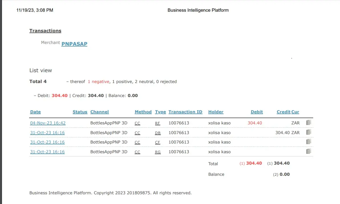1 hr 30 mins later I started receiving messages from the bank about transactions that have been made. There was a purchase of alcohol from Tops which was R16 000, a withdrawal of R3 000 and other items. Altogether the money that was used was R21 000. We quickly blocked the card. In trying to figure out what might have happened we realized the card that our helper had returned home with was not even ours. We went to the shop presented our case to the supervisor expecting them to reveal the cctv footage.
