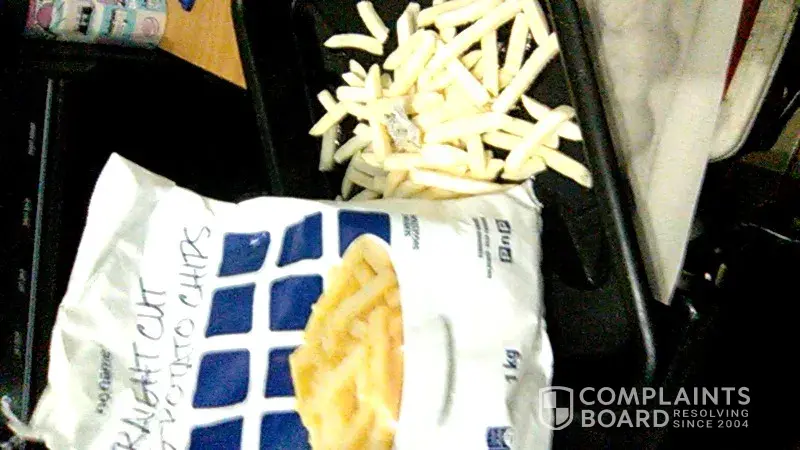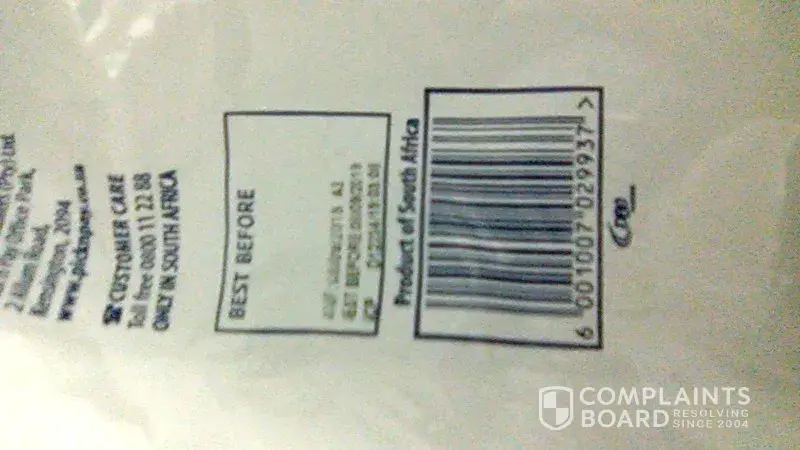 I bought PnP No Name brand straight cut fries during end September / beginning of October from Pick n Pay Heidelberg (Victorian Center) where I always buy my monthly groceries. Last night I wanted to make fries, and when I emptied the bag into the oven pan, a dirty sticker/label came out of the bag with the chips. It was dirty so seemed like it was on the floor before it landed in the sealed bag of chips? I was appalled and had to throw away the fries as I could not risk my family's health.