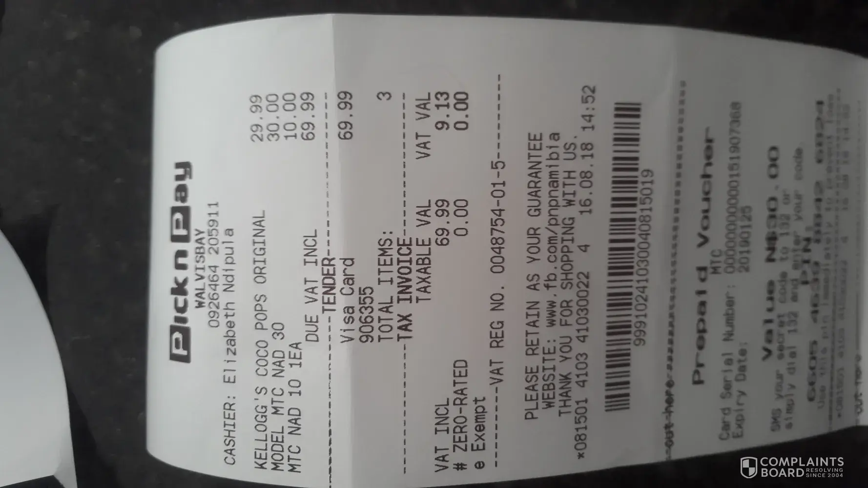 Good day, I was at PNP in Walvis Bay in town. I bought cereal which was advertised for N$ 29.99 for kellogs assorted 350g/500g. however when I got to the till the supervisor, Anne-Belle refused to give it to me for that price. I told her this is false advertising but she ignored me. I would like to know what your steps are regarding this as I am very upset.