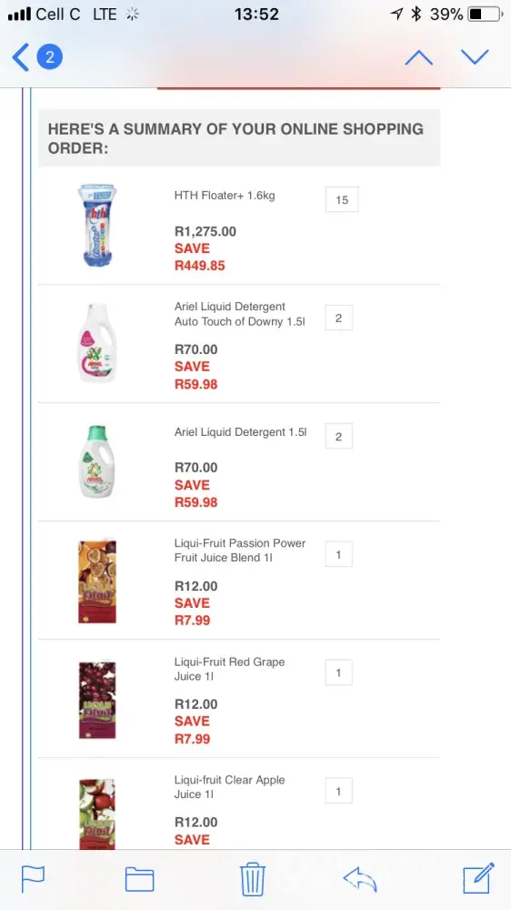 I have attached the order that is on the website EVEN NOW and which is the one that I have as well on my side and have provided the website that I downloaded it from as per below screenshot. I believe that pick n pay is using false advertising with this, because if these are old prices, then why are they still uploaded on the website, that is an internal problem that pick n pay needs to sort out with it's IT department (me as a consumer have got nothing to do with that) my duty is to go onto the website and buy not to look at "last updated".