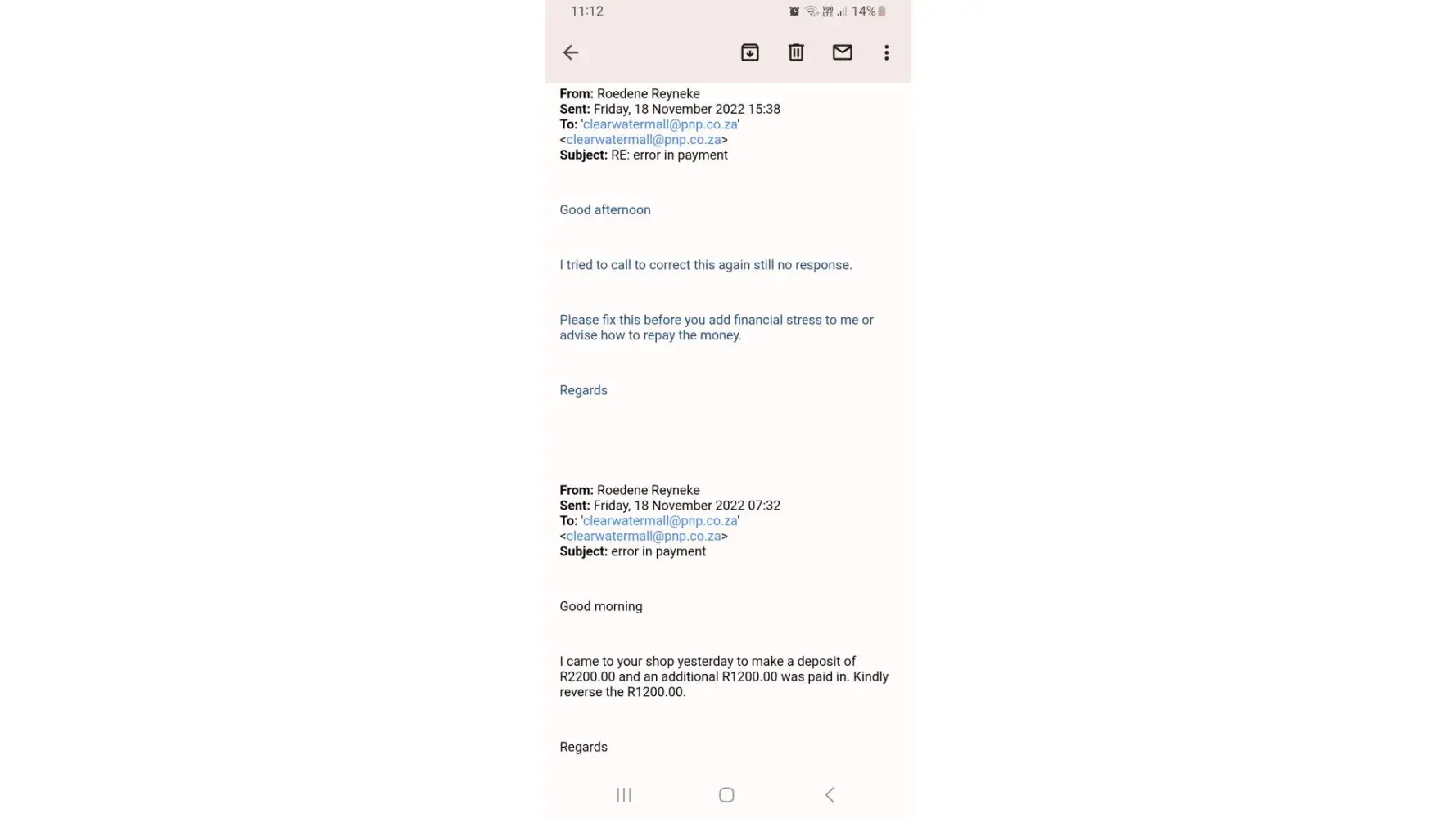 7. Subsequently logged numerous complaints from the 6th of March until 13 April with PnP Online Services. Although the logged complaints were acknowledged, the problem was never resolved and as of today I still do not have the new disc nor any refund. In addition the information coming from PnP is contradicting as certain agents claims the service has been stopped, others claim it is operational, but still cannot resolve the issue.