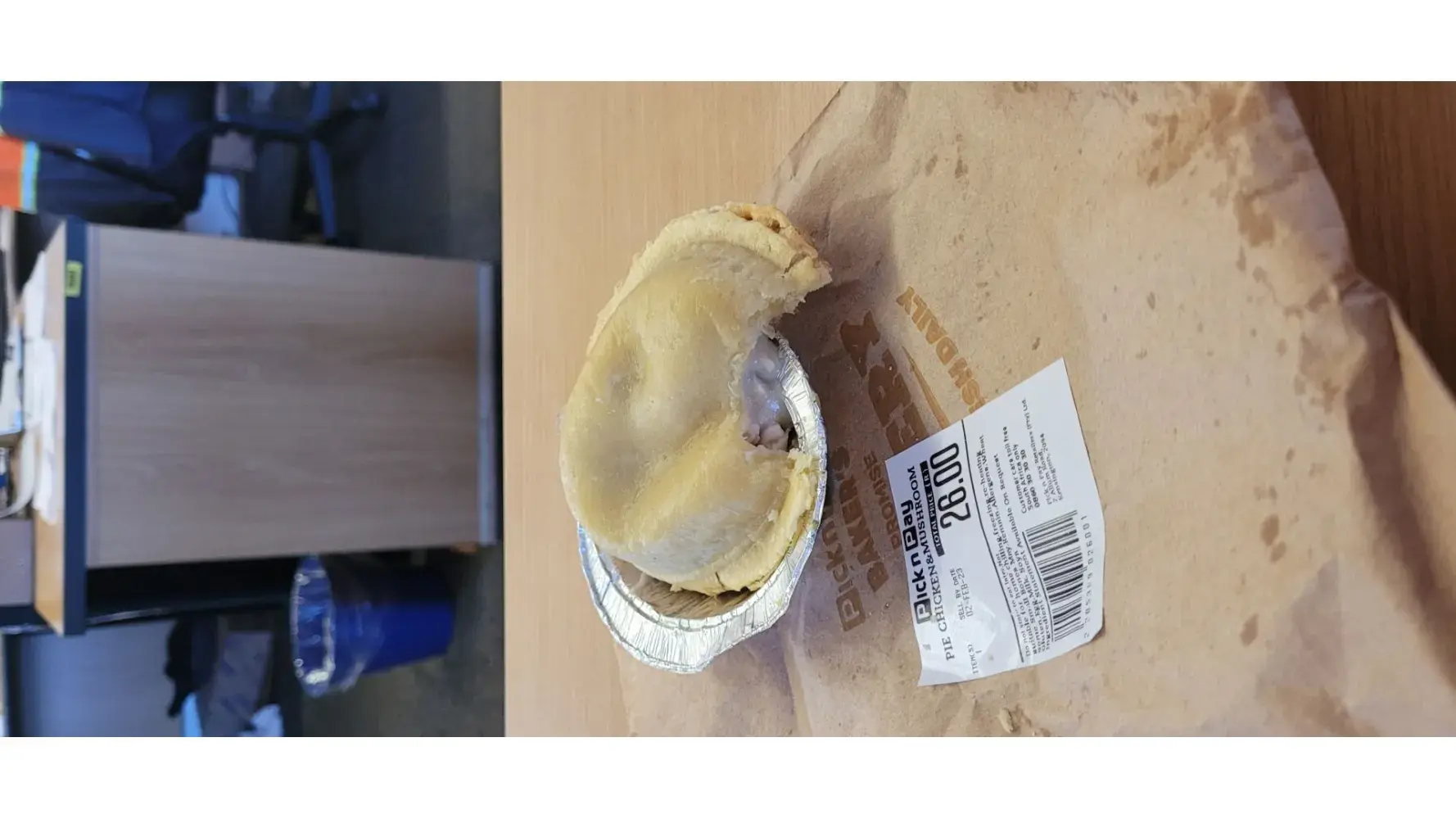 On 02 February 2023 on my lunch time after 12, I bought a chicken and mushroom pie from Pick n Pay in Howard Centre.