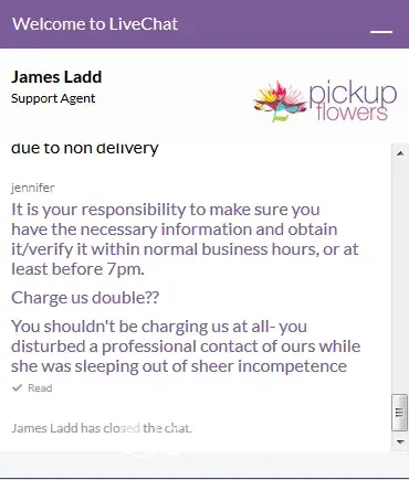 The below is some of my live chat with the representative of PICKUPFLOWER