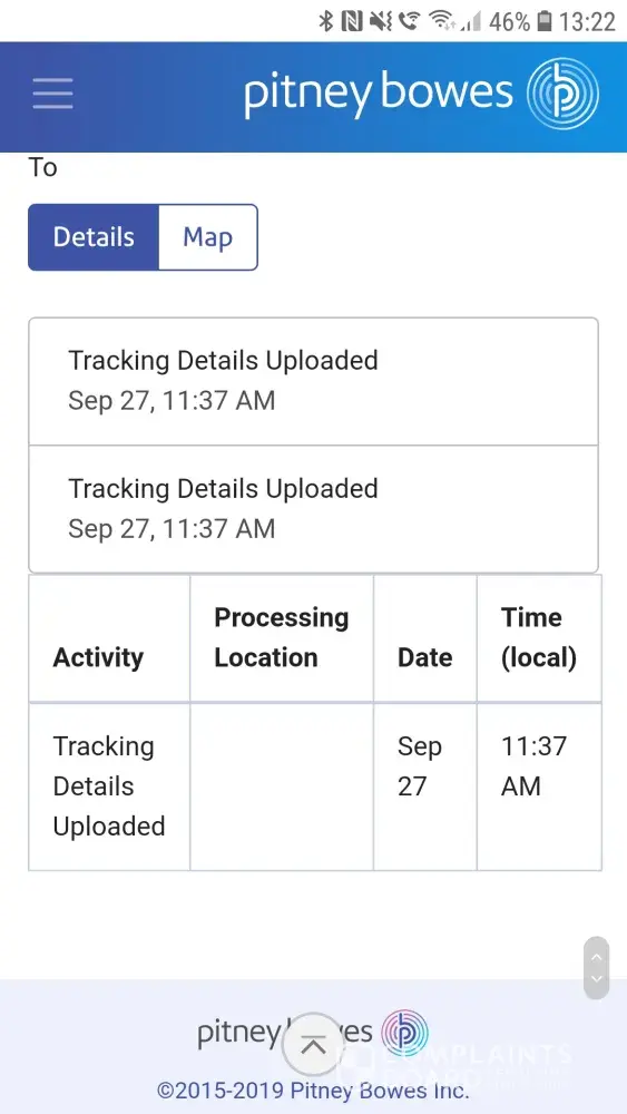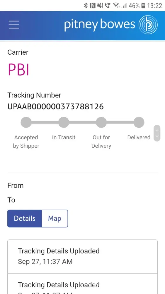 today i checked tracking and see that pitney bowes has no