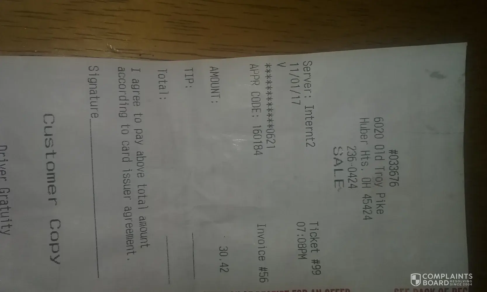 I would like to make a complaint about my service at pizza hut in bellefontaine neighbors
