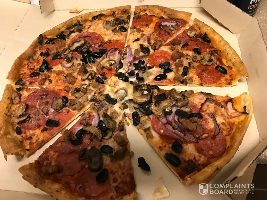 I know the weather was bad and I tipped the gentleman $7 and he was very, very nice. Obviously whoever was working that day was having a bad day or didn't know how to cook your pizzas? Please, please look into this because I love pizza hut, not dominos or papa john's. This store is literally 1 mile from my place.