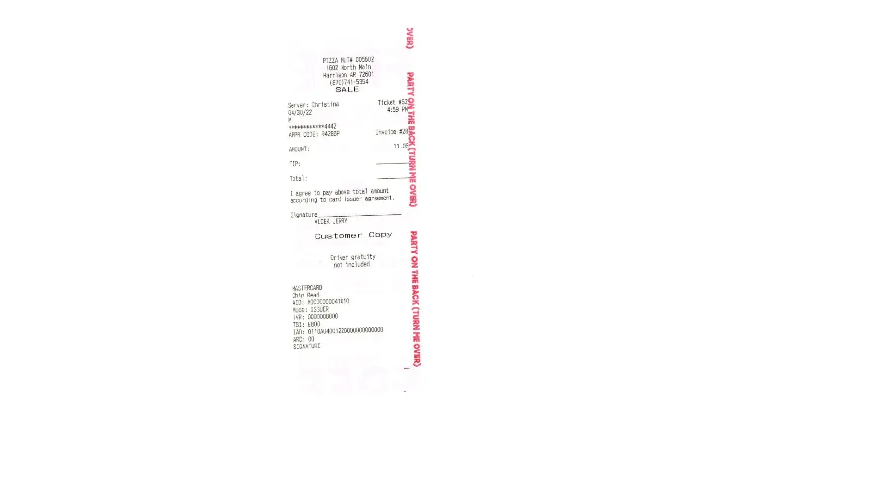 3) Tried to complete the 'customer servey', but there was no CODE: # on my receipt, only an Appr Code 94856P; which was not accepted.