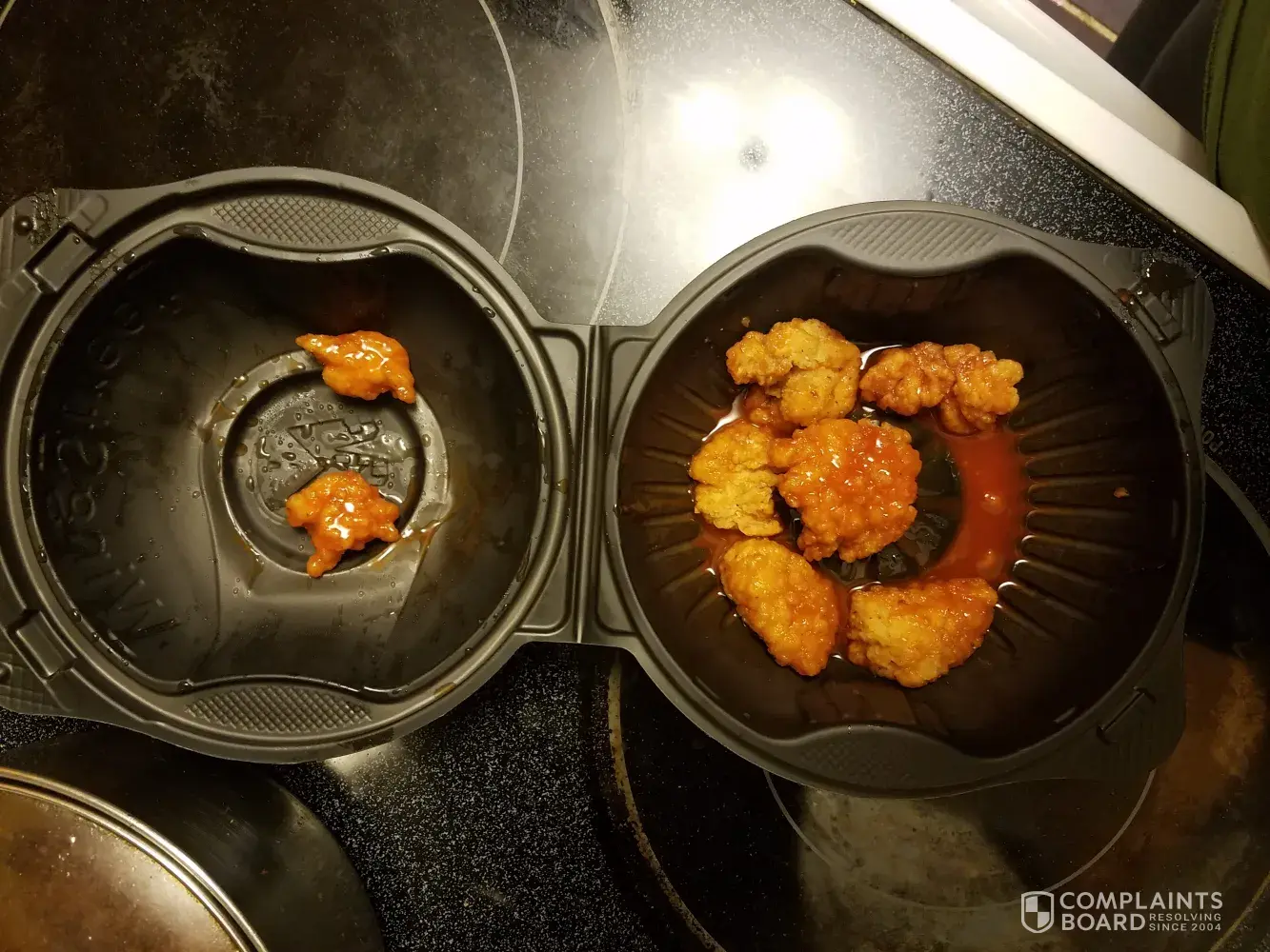 1 bone out wing was the normal size. 3 of them were very small and 4 of them were tiny. I am not exaggerating. It looked like scraps from the bottom of the bag. The wings were so small that there was no meat it was just a tiny piece of crunch. Literally the size of a dime. If I pay for 8 wings, I expect 8 wings not scraps. Very disappointed.