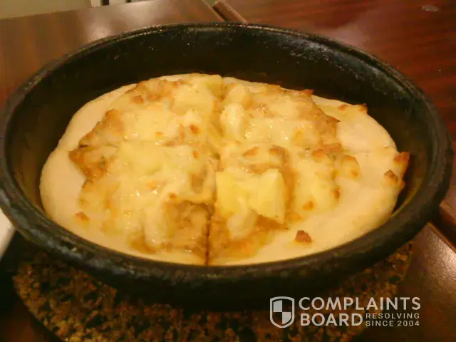 I need a proper explanation and a compensation for this filthy plain pizza served. Expecting a proper feedback regarding the same.