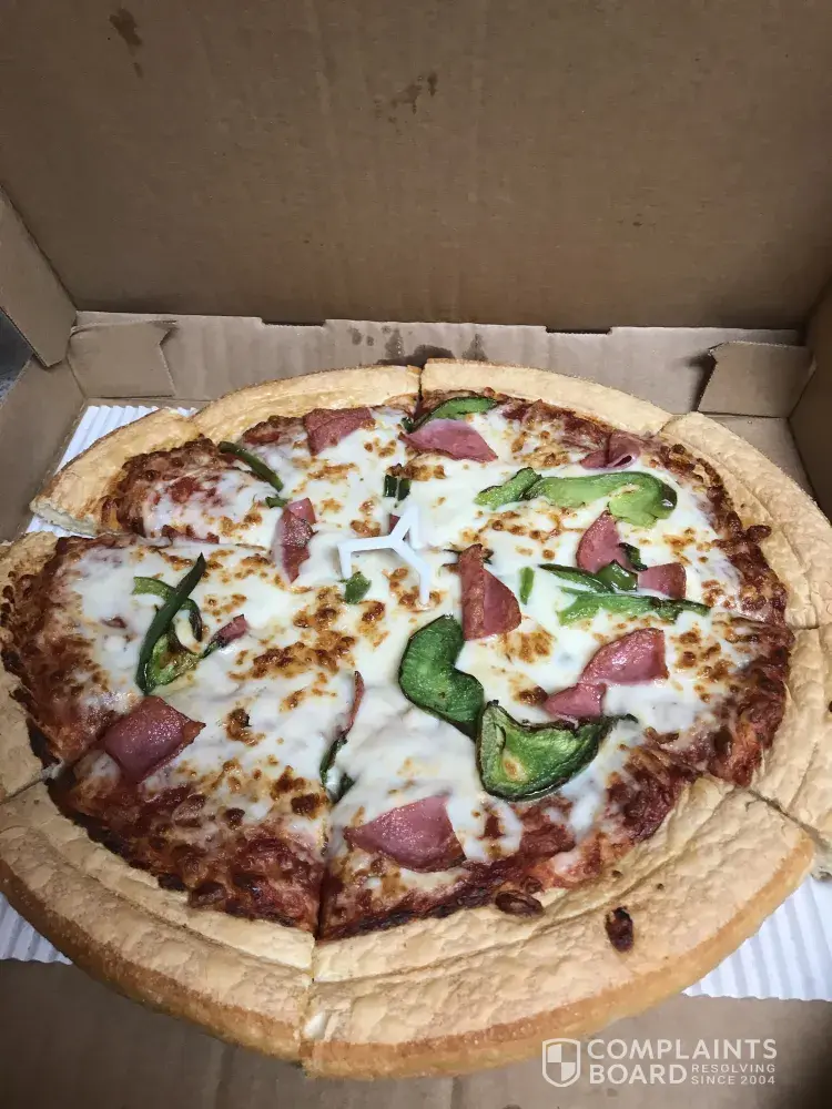 I ordered a large ham & green pepper pizza last night-paid full price for it. When my husband brought it home it had maybe 5 pieces of green pepper on it. I also ordered a meat pizza & it was fine. It was like the green pepper was an afterthought. This was truly a disappointment & I don't feel like it was worth the money. Pizza hut is usually the best & I...