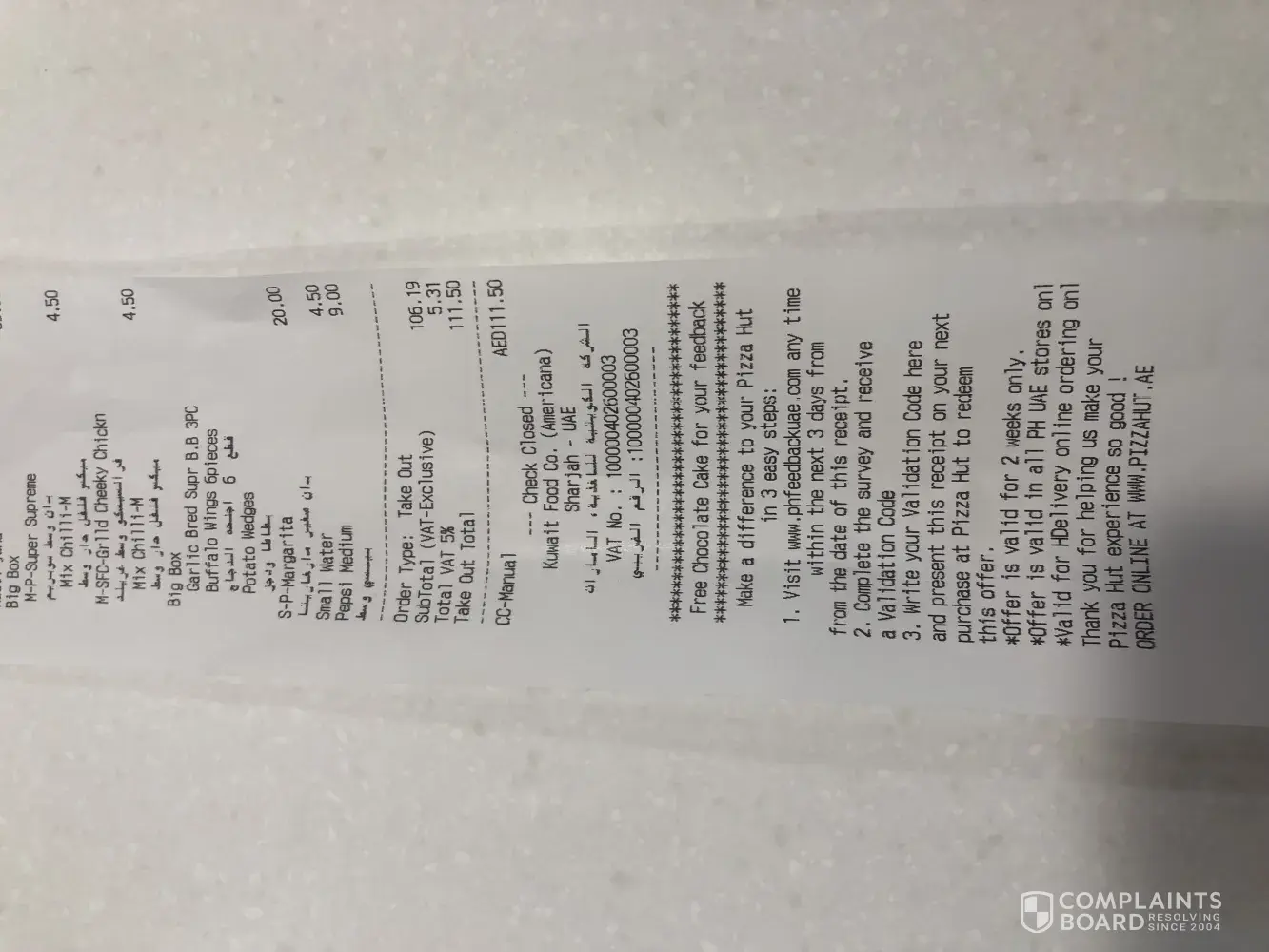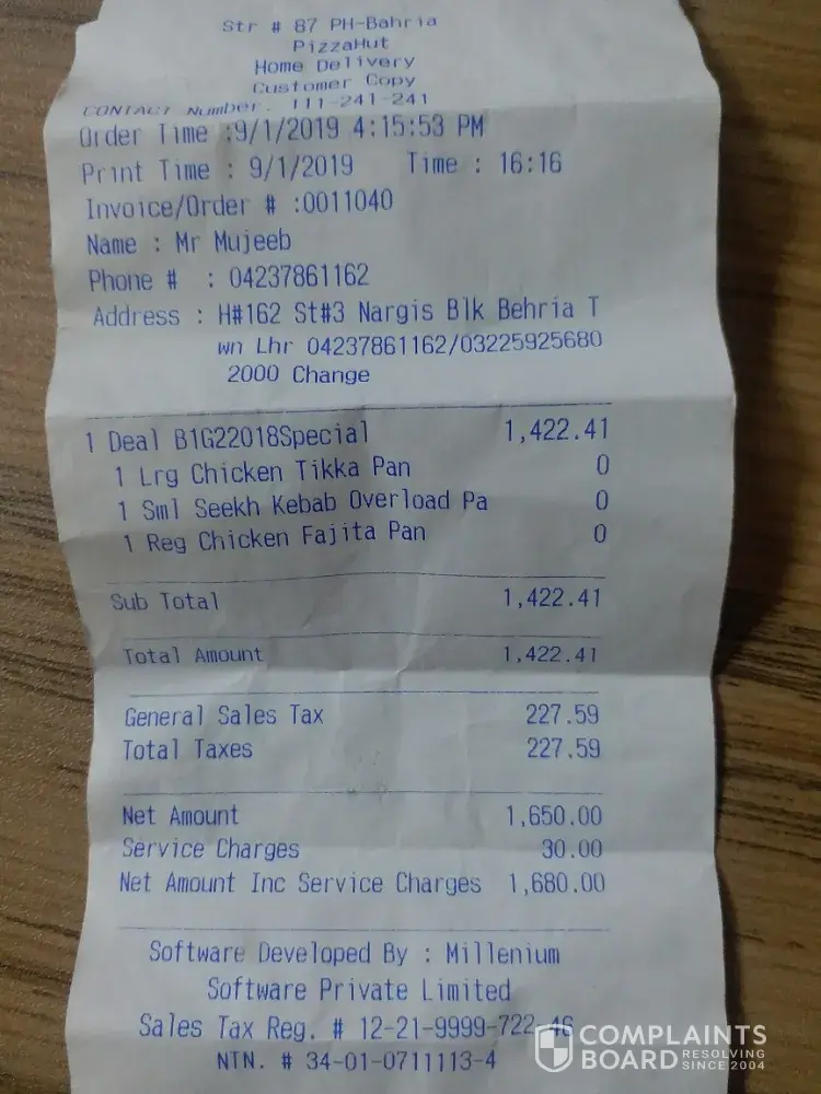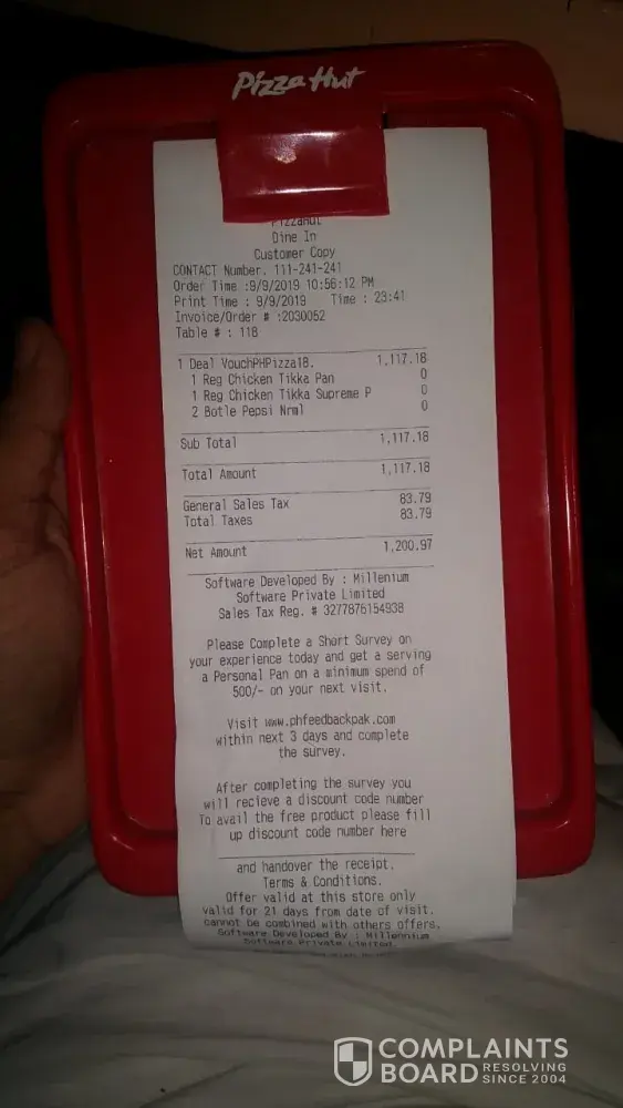 Read full complaintPizza