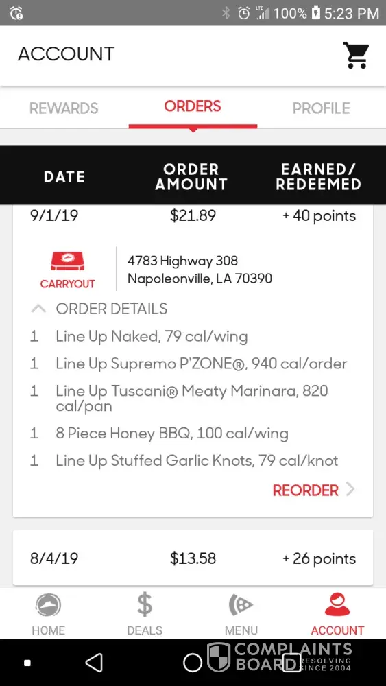 Read full complaint and 1 commentdelivery pizza, brownies