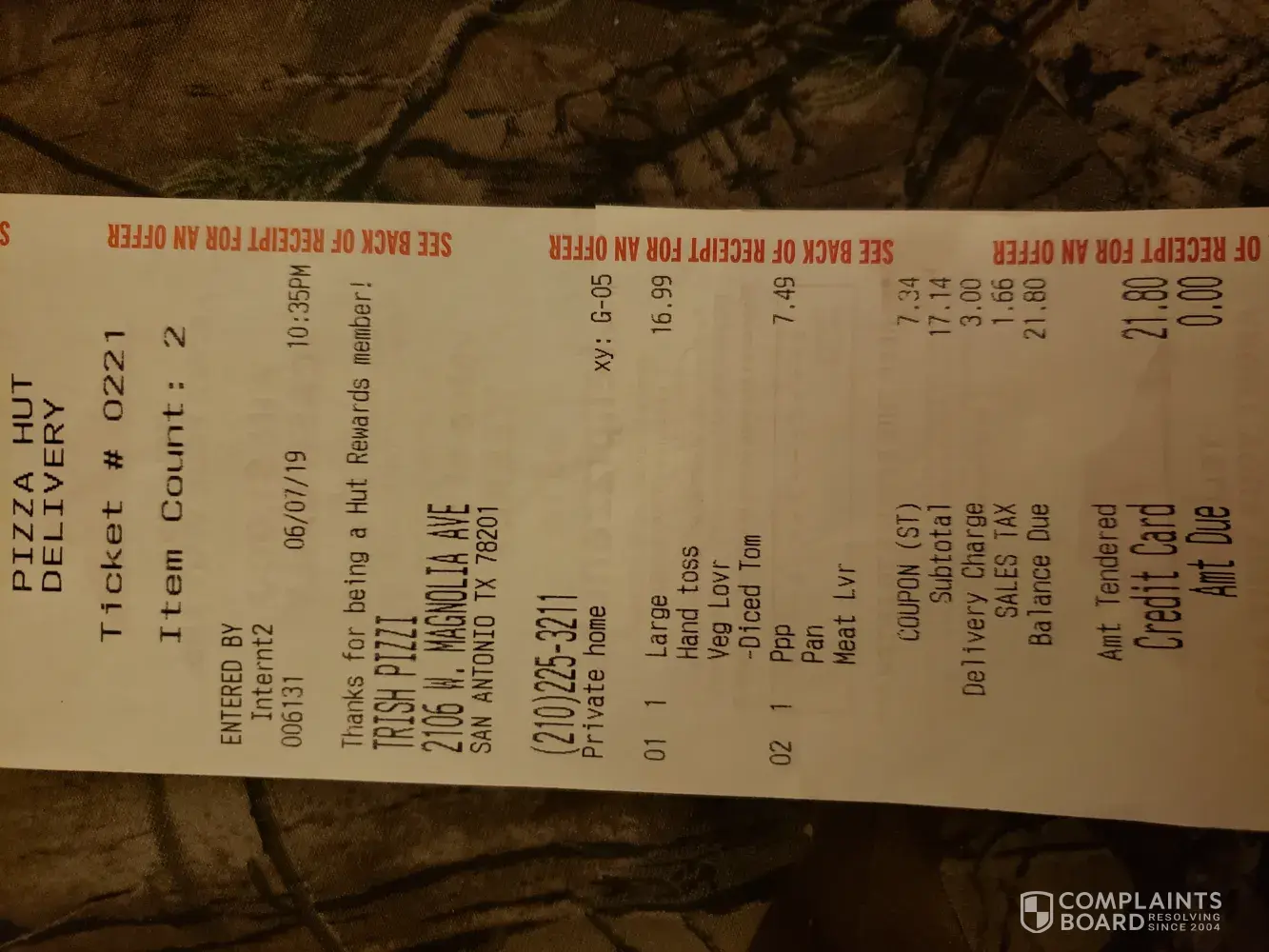 Pizza Hut complaint