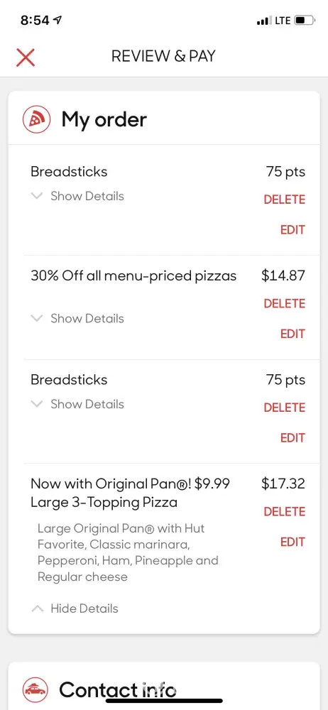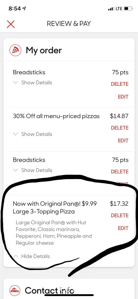 Pizza Hut over charge on app order deals