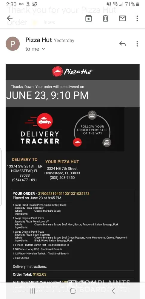 Pizza Hut Complaints Page 36 of 148