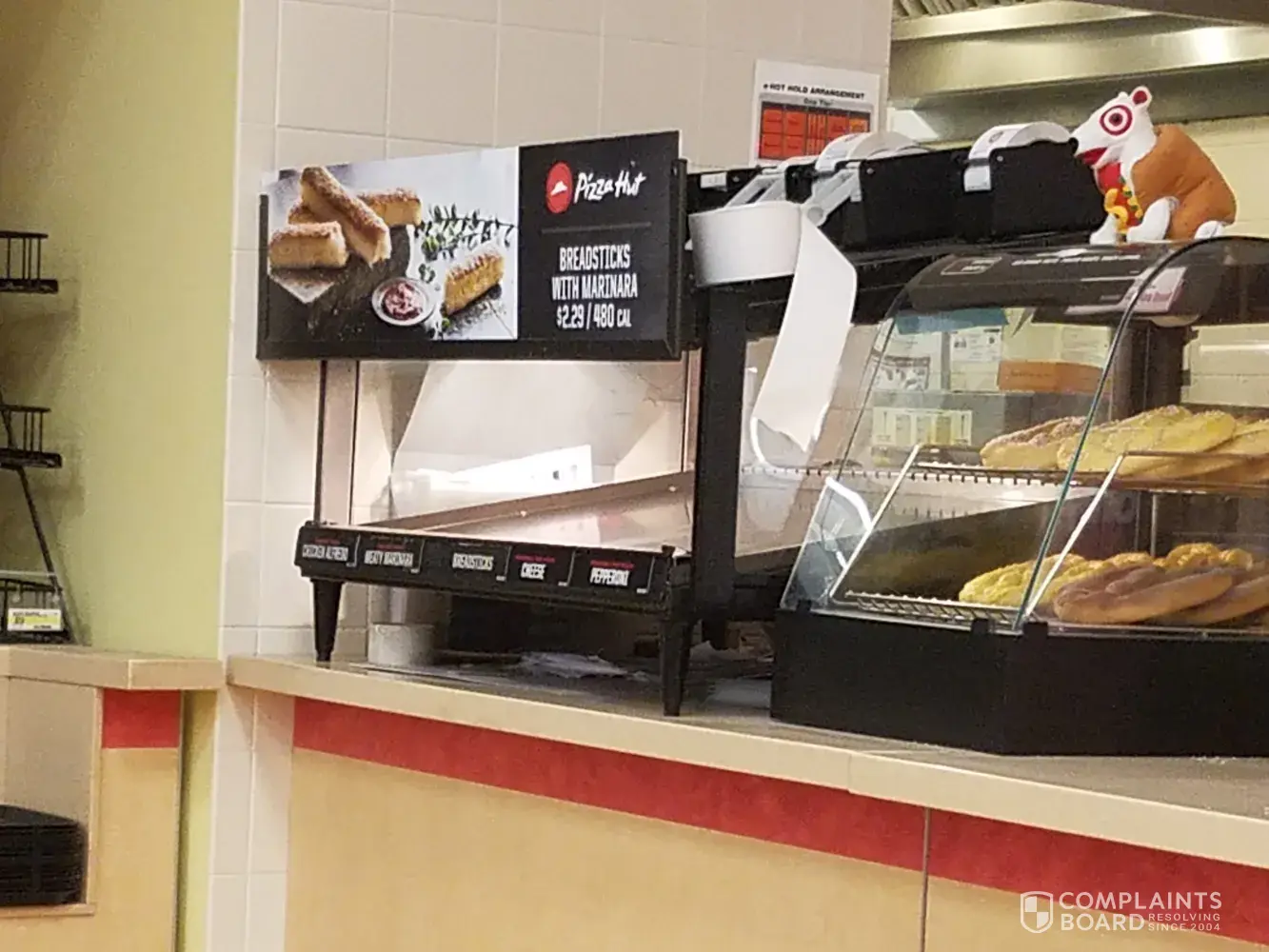 I just visited the pizza hut Express in the novi target for the 2nd time today 09/28/18. The first time I came after 12 noon and was told the ovens were down and they did not have food. I thought I would give it a second shot today and when I walked up to the counter there was no one there. There was not a single Express food item available to grab and go. Not one thing. A gentlemen finally came and when I ordered a pizza breadstick combo meal he informed me they were out of breadsticks. How is a pizza place out of bread items? The coke machine was out of ice, cherry coke and diet coke. The coke I did get was flat. I was offered a substitution item of the breadsticks so I chose popcorn. I sat waiting for my individual pizza to be cooked. After it was delivered I sat to eat my meal in the open tables provided. I watched 3 different customers come up to the counter and leave as the gentlemen left the counter. Eventually another staff member from the Starbucks came and put up a gone on break sign back at 1:45 . Why would you schedule a break of your only attendee during the lunch time frame? Needless to say I am only submitting this complaint because you really have an opportunity to make more money at this location with the amount of traffic I saw come through here but the service and availability is so poor. The Starbucks had a continuous line and help with good service.