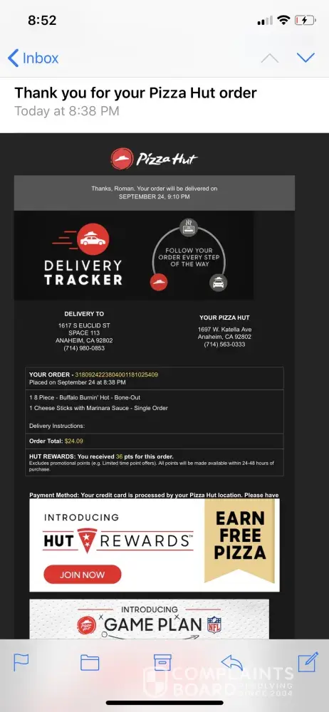 I order my pizza online so i can pick up 20min from the order time to get my pizza once i arrive. There is no reason why i order 20min before i arrive and an extra 30 when i get here. This is unacceptable. If business isnt wanted and we can go elsewhere. The store in santa ana Harbor take forever. I get it that they get backed up but laughing at customer faces and making jokes about it is not right. Customers want their orders asap that why they order carryour. They are kicking back cracking jokes while im frustrated because its been nearly an hour and the pizza isnt ready. This is pizza hut on Harbor and first in santa ana. I have a rewards account and been a loyal customer for a while now but after this behavior it ruins my views on the location. There is pleanty of places down the street. Papa john, dominos, etc. Please fix this...