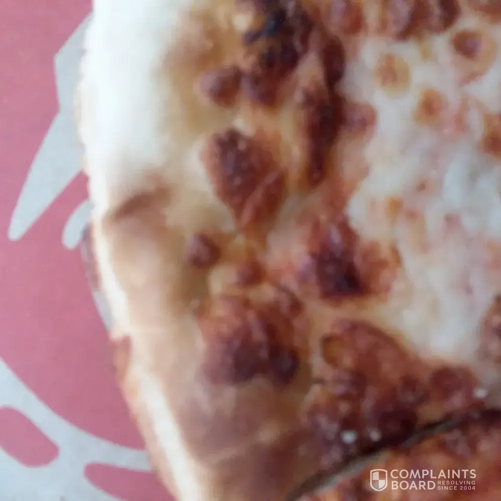 To whom this may concern, on Monday I order two pizzas and one of the pizza came flipped over in the box and we couldn't eat those pieces because the pieces weren't good to eat the other pizza was fine it was just the cheese pizza that came flipped over in the box it was delivery as you can see I send it the receipt to so you could see my information