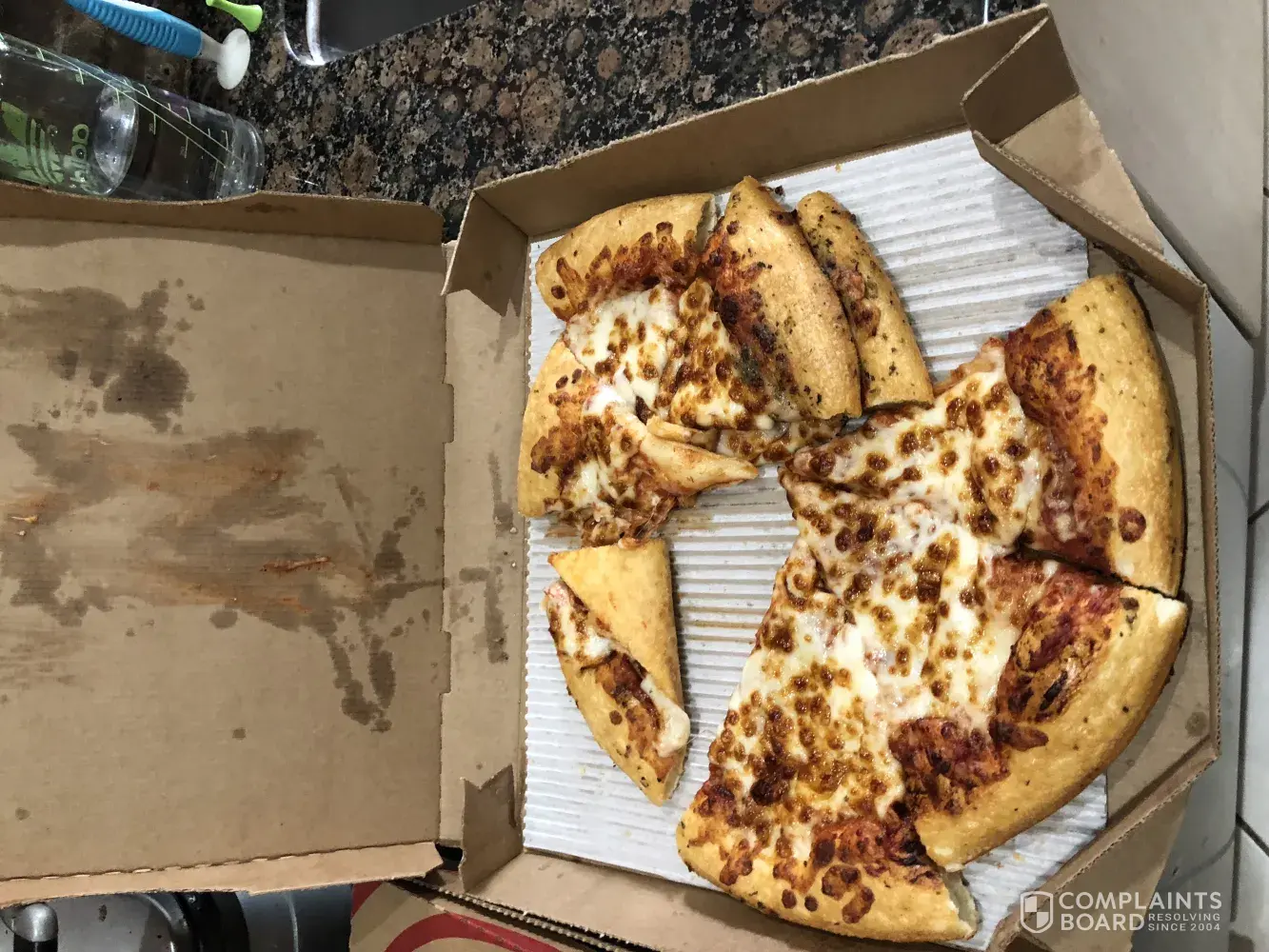 On Friday around 830 pm I ordered large 2topping pizza and cheese bread online. Around a hour later my food was delivered cold and I was missing my cheese bread.