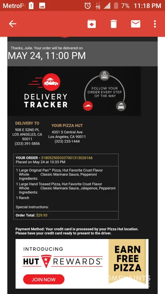 pizza hut took my money and I want my money back