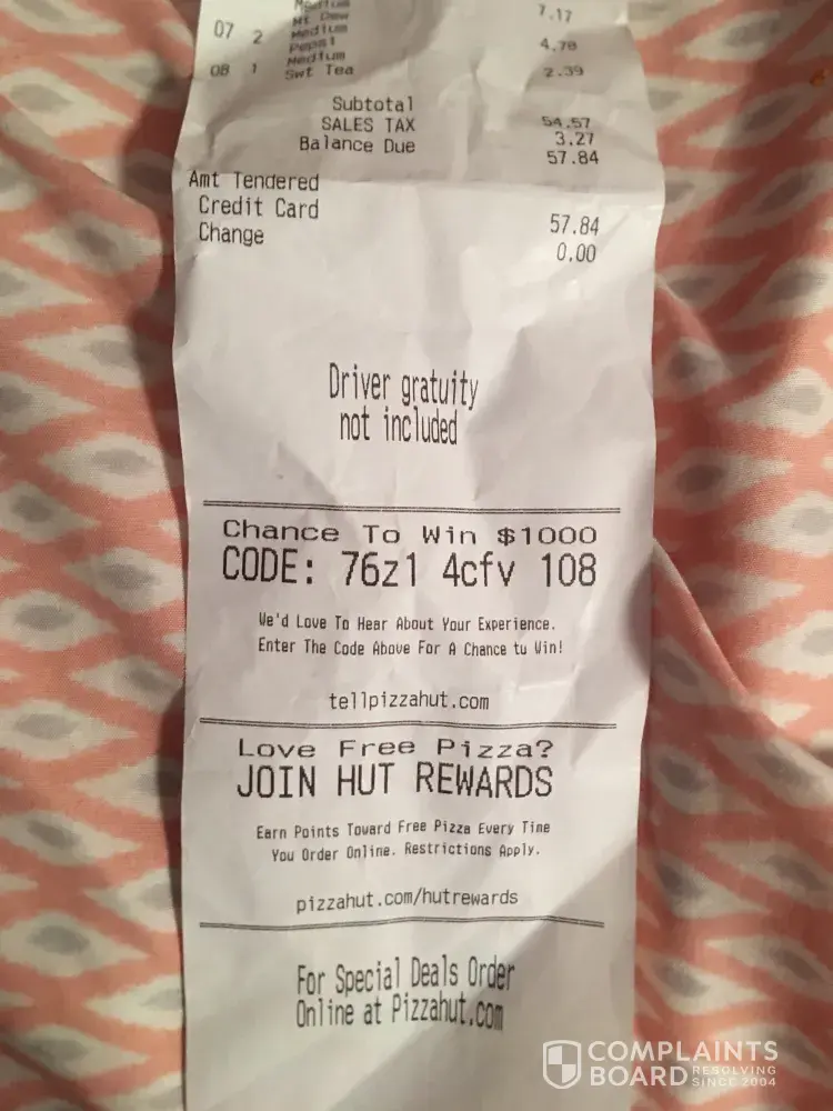 I've had to contact my local Pizza Hut on three different occasions because they tend to tip themselves after I've tipped them cash. I always keep my receipt and check it against my cc the next day. I've contact the store manager who gives me the "sorry about that" line and reimburses me the tip, but this time I've had enough! It is against the law for any restaurant/driver to tip themselves after you've put a line across the tip area on the ticket. It's always " I will contact the Area Coach" about this. They've never suggested any courtesy items for my inconveniences.