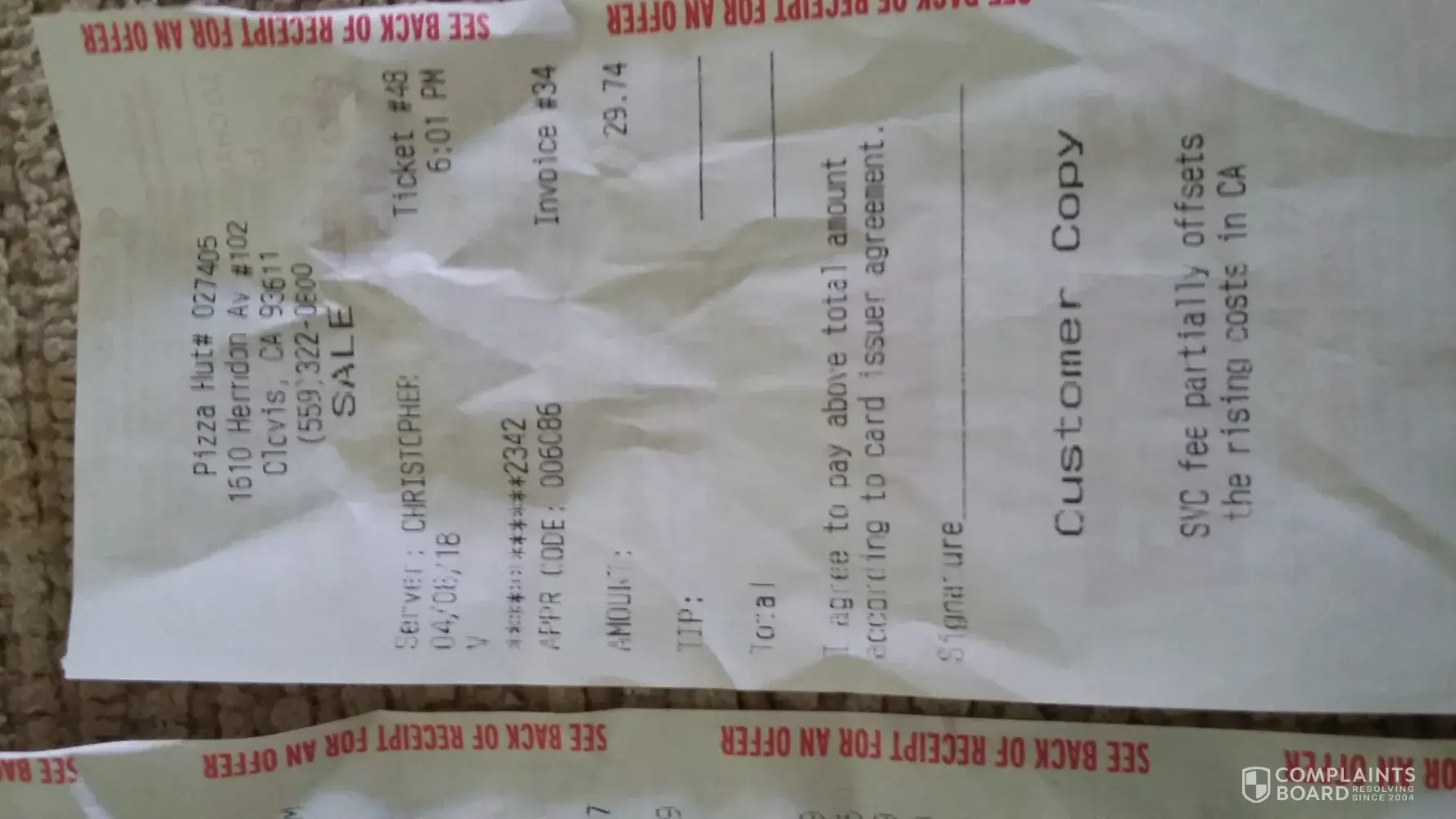 Ordered for delivery from pizza hut in Clovis.ca ticket 48