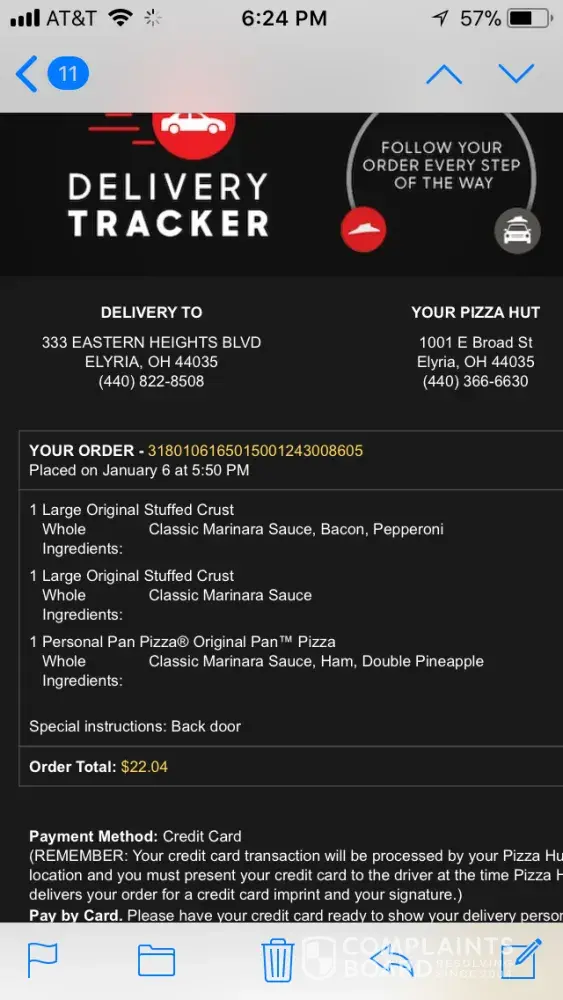 I ordered a pizza-YOUR ORDER - 3180106150043001243034030 -Placed on January 6 at 4:00 PM,