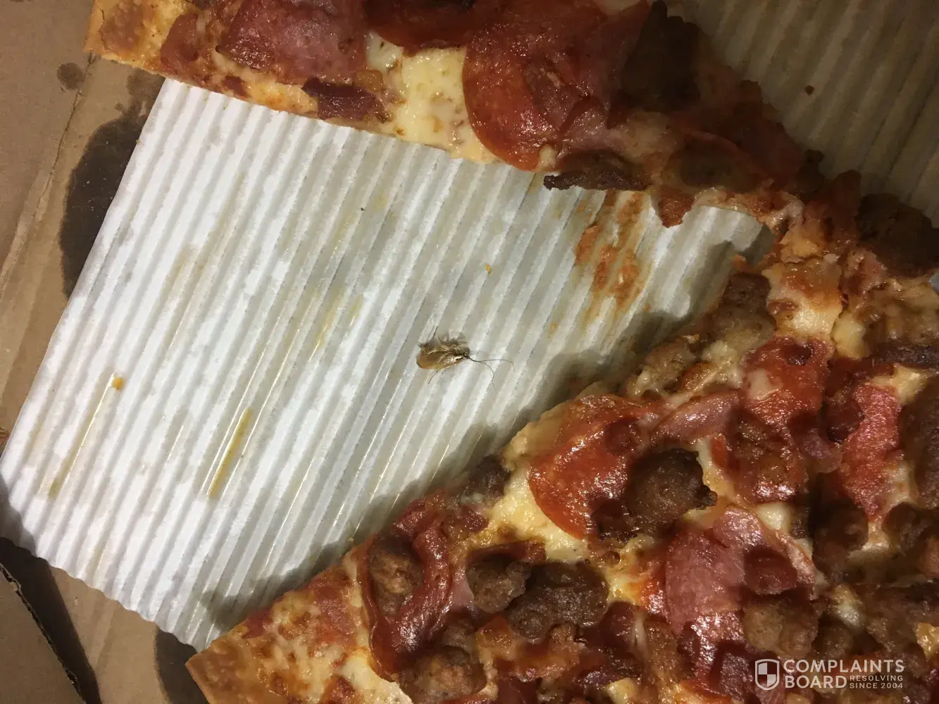 I ordered a pizza from Pizza Hut and after eating I got down to the 3 peace and as I lifted the pizza there was a dead cooked roach in my food Pizza Hut said they could not give me my money back never again will I eat there so disappointed because that was my go to place for food wil not be telling anyone to go and eat there because I'm very unhappy about how I was taking care of