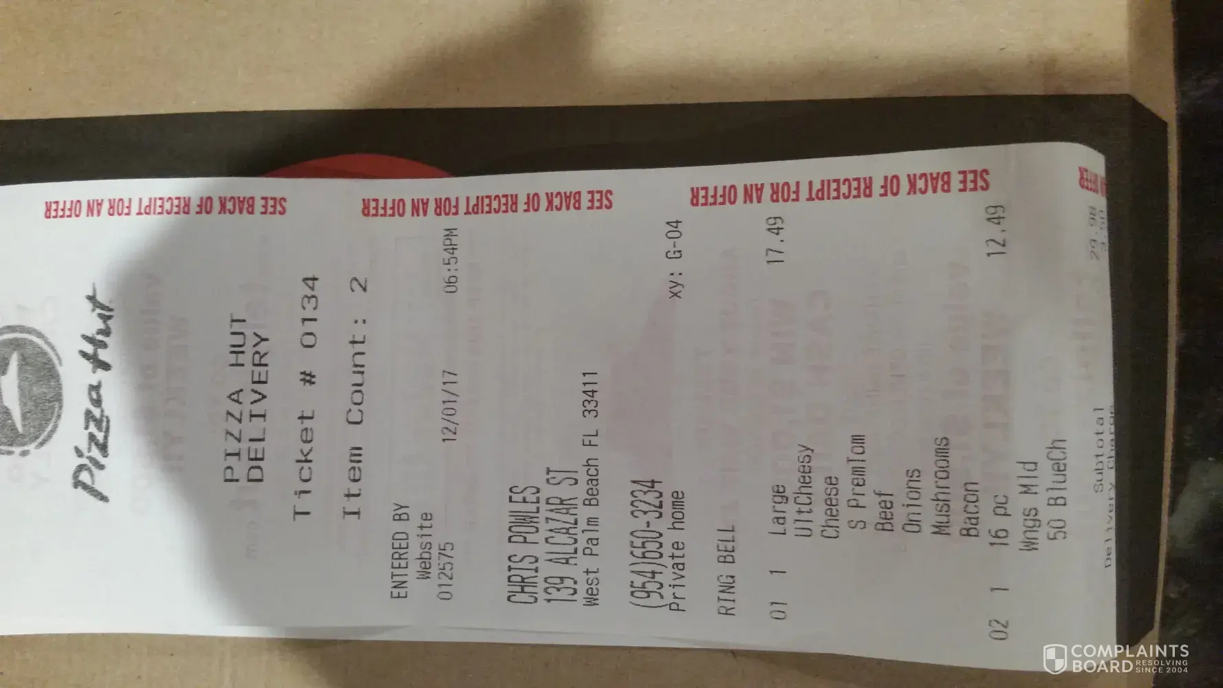 On 12/1 ordered pizza and wings from store #012575 when order arrived it turned out the pizza was totally wrong from what was ordered and paid for online.