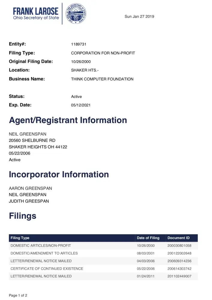 Aaron Greenspan was put in as CEO of Think Computer Corporation in 1998 and Think Computer Foundation a fraudulent 501 (c) (3) in 2000, by his father Neil Greenspan and mother Judith Keene Greenspan are both directly and indirectly involved in all of these financial schemes. These people harass their neighbors in Shaker Heights, Ohio and now they have unleashed Aaron Greenspan on the rest of the United States.