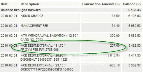 The in 2008 they started deducting money from my account, which I did not give permission for them to do, I went to see the Branch, after 3 months still I get no feedback, I go back make a scene, see the branch manager, the money is paid back into my account.