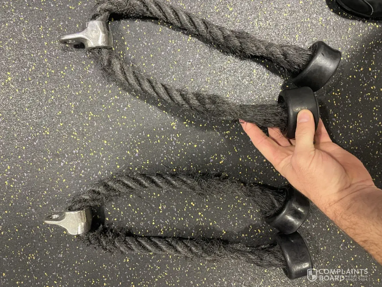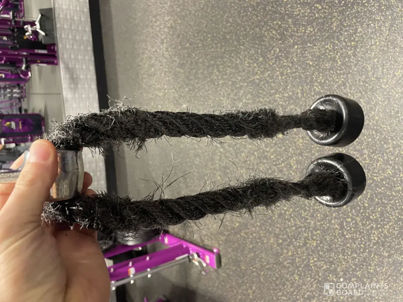 Tattered and torn ropes on equipment. I brought the faulty equipment to the attention of management. They assured me that new equipment parts were ordered and should arrive very soon. This has not happened. Still the same worn out equipment. NEED HELP RESOLVING THIS ISSUE.